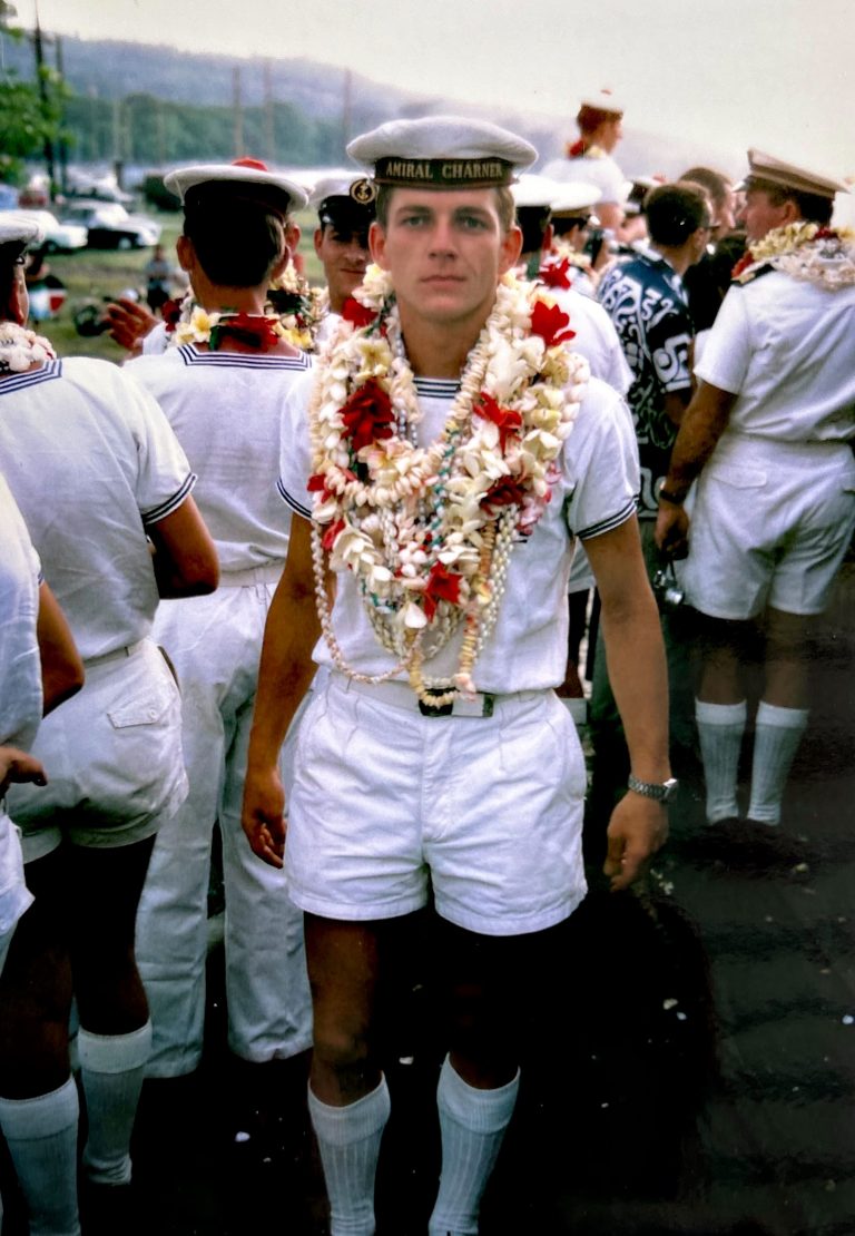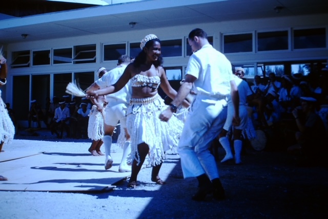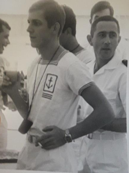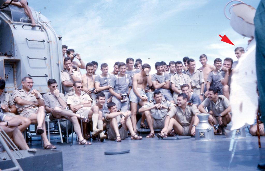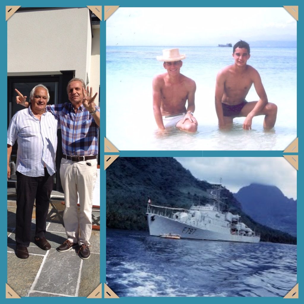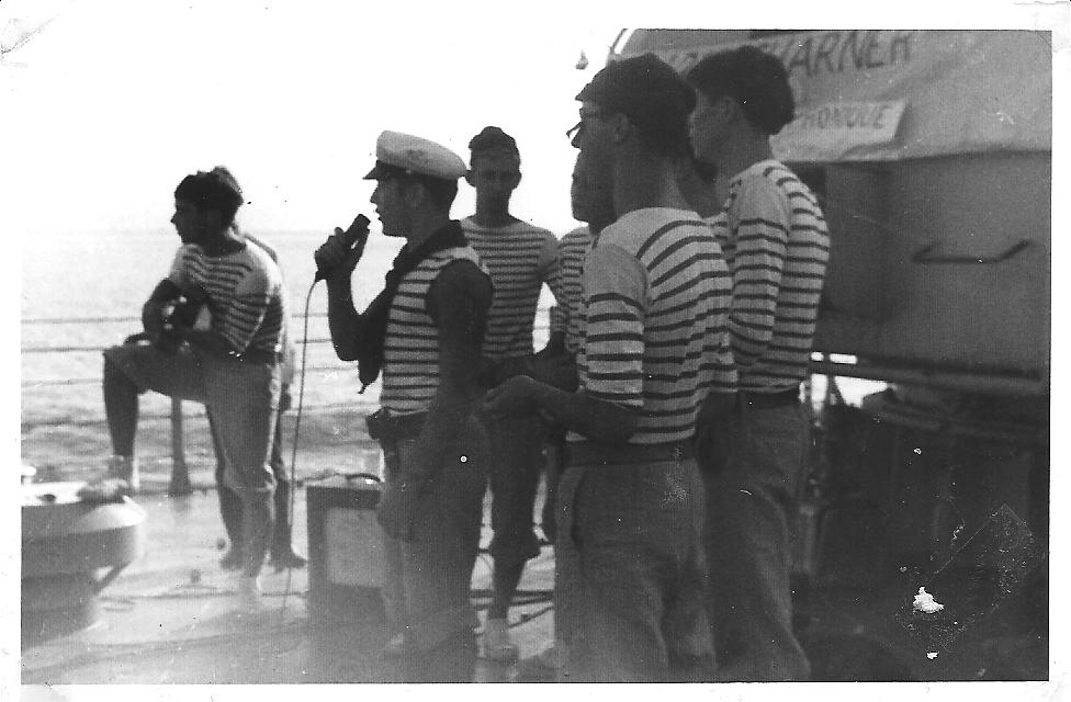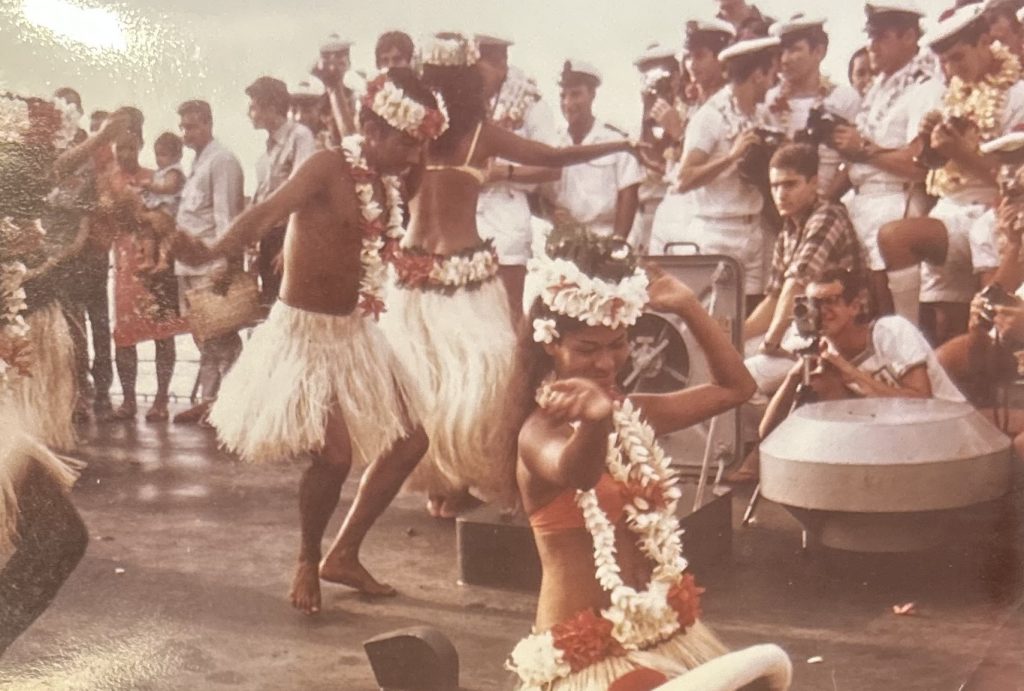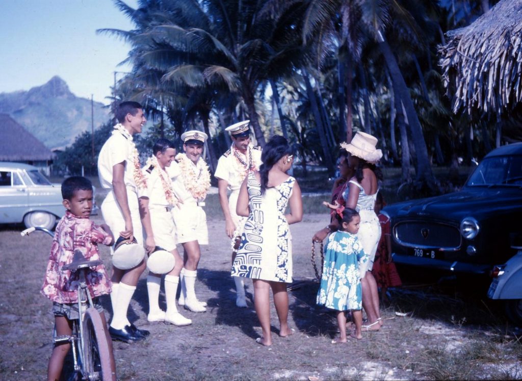 Départ de Papeete après huit mois dans le Pacifique. L’Amiral Charner était chargé d’effectuer des missions météorologiques. Nous nous positionnions à environ 500 nautiques de l’atoll de tirs atomiques, Mururoa. Nos missions consistaient à l’envoi de ballons météo, de mesures des vents, et d’envoyer ces informations au centre de tir comme plusieurs autres bâtiments autour. Une fois les informations collectées de tous les bâtiments et permettant le tir les unités rentraient à Papeete jusqu’à la prochaine mission. C’est au cours d’une de ces missions que nous avons fait des ronds dans l’eau pendant 23 jours. Le général de Gaulle est venu assister à un tir sur le croiseur De Grasse. Nous profitions de nos escales en profitant des magnifiques lagons, de pêches sous marine, de baignades et de soirées de danses tahitiennes. Oui j’ai appris le tamouré et le dansais pas trop mal..