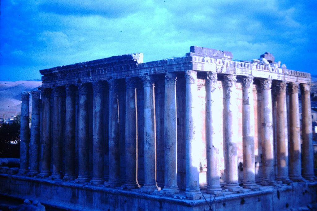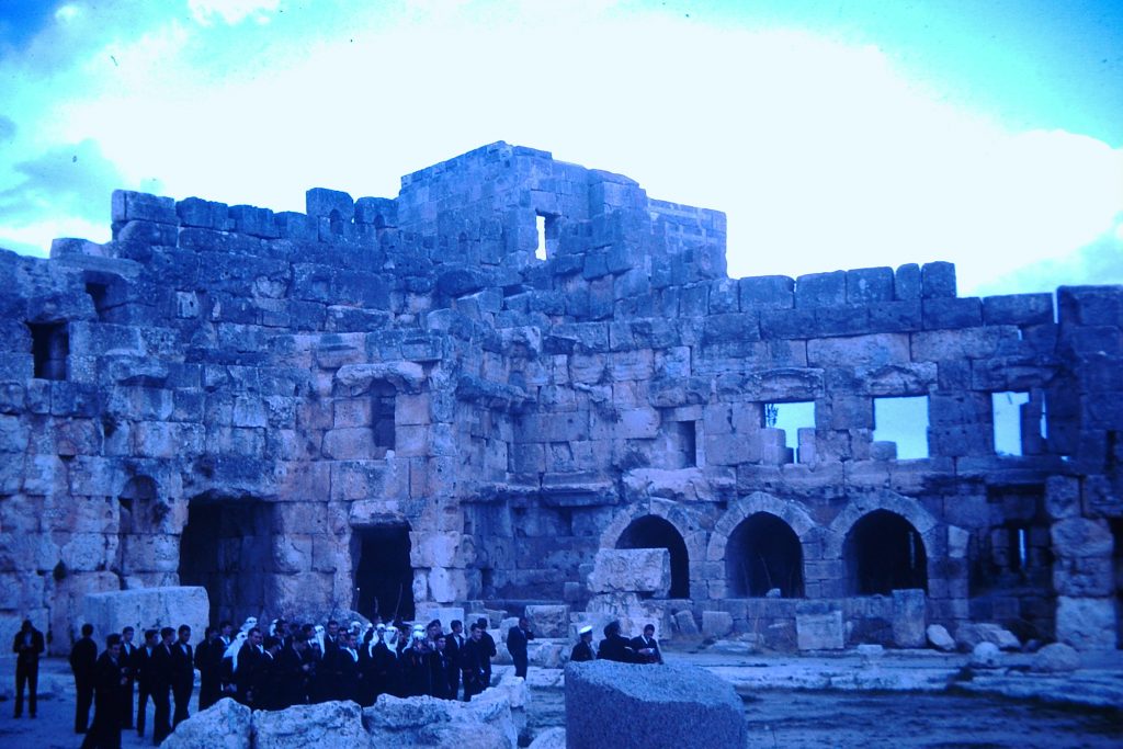 Escale à Beyrouth. Visite de Baalbek, le temple de Jupiter. Le Liban était très accueillant pour les Français., de Gaulle y était très aimé. Nous avons déjeuné dans un restaurant, au moment de payer on apprend qu’une personne a une autre table avait réglé pour nous, nous avons été bien sûr la remercier .