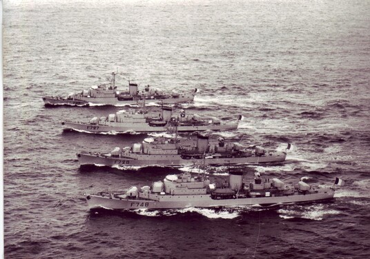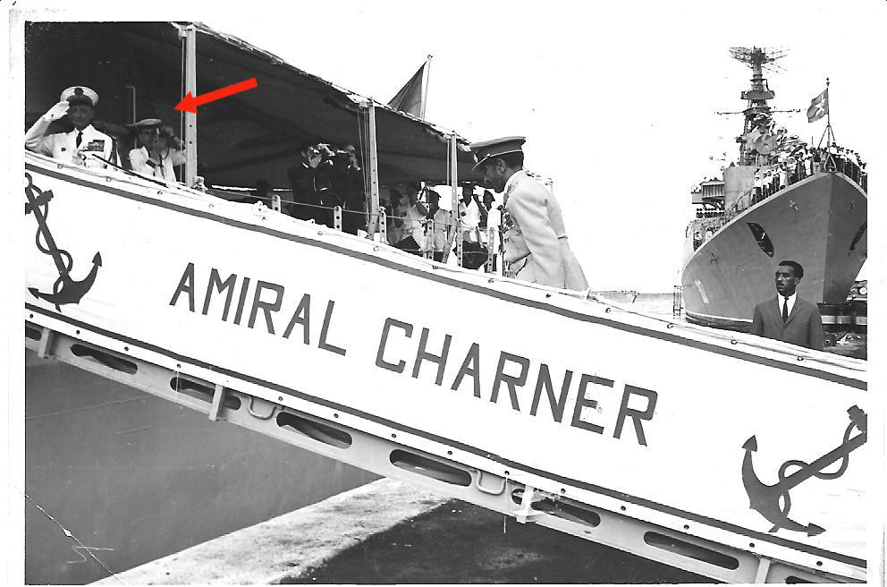 L’empereur Haïlé Sélassié avait organisé une parade navale. Quatre bâtiments étaient présents, Un Américain (USS Vesole), un Anglais, un Russe (à droite) et nous. Nous avons défilé en ligne devant le yacht du Négus.