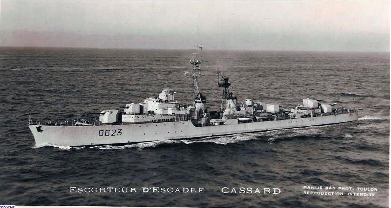 L’escorteur d’escadre CASSARD a été mon premier embarquement à ma sortie de l’école des radiotélégraphistes. A bord officiait un contre-amiral commandant la flottille d’escorteurs rapides (ALFER). Il avait trois radios à son état-major dont moi. J’étais très impressionné de voir parfois devant la porte de son  carré un matelot planton muni d’une hallebarde… cela faisait un peu « moyenâgeux »… il ne lui manquait plus qu’une armure…